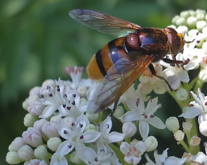 Attich (Sambucus ebulus) und große Waldschwebfliege (Volucella zonaria) ...mehr über unsere → Schwebfliegen im Glemstal |