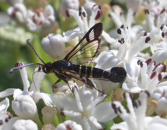 Attich (Sambucus ebulus) mit unbestimmter Glasflügler (Sesiidae)ähnlich zum Zypressenwolfsmilch-Glasflügler ...mehr über unsere → sonstige Falter im Glemstal |