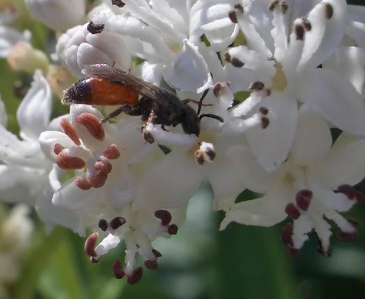 Attich (Sambucus ebulus) mit Sphecodes gibbus (das Bild zeigt das Weibchen), es schmarotzt bei mehreren Arten der Gattung Halictus (Furchenbienen) ...mehr über unsere → Wildbienen im Glemstal |