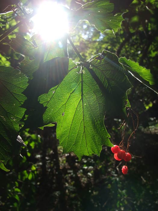 Gewöhnlicher Schneeball (Viburnum opulus) mit roten Beeren gegenüber dem Trafoturm ...mehr über unseren → Trafoturm im Glemstal |