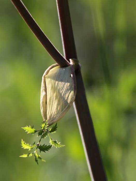 typisch für die Wald-Engelwurz (Angelica sylvestris): aus der Hülle wächst ein kleiner Ast |