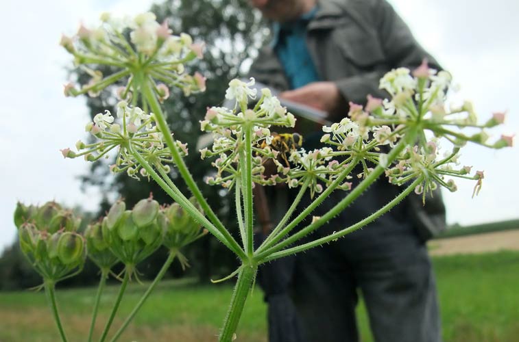 Manfred Herda zeigt den Wiesen-Bärenklau