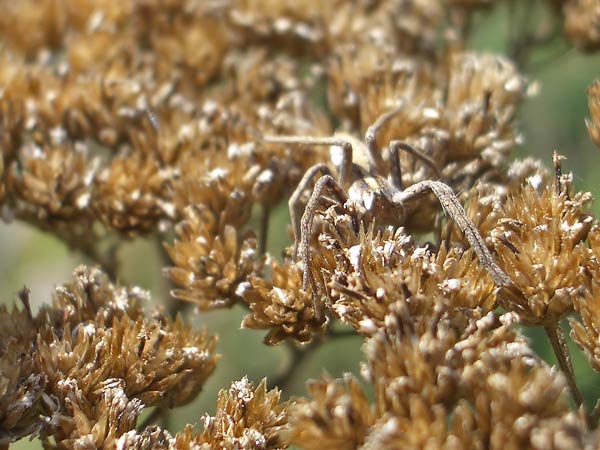 verblühte gemeine Schafgarbe (Achillea millefolium) mit einer Raubspinne (Pisaura Mirabilis) ...mehr über unsere → Spinnen im Glemstal → Naturdenkmal 34/18 Pflanzenstandort "Paradies" |