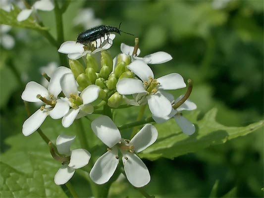 Knoblauchsrauke (alliaria petolata) mit Käfer ...mehr über → Käferarten im Glemstal |