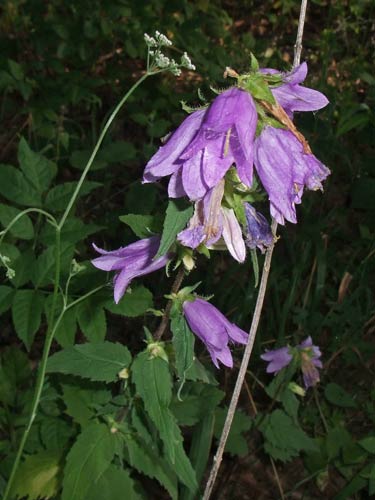 eine Art Glockenblume im Wald mit Brennesselblättern: nesselblättrige Glockenblume (campanula trachelium) |