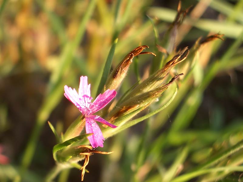 die unbekannte Nelkenart links: Karthäusernelke (dianthus carthusianorum) zum Vergleich |