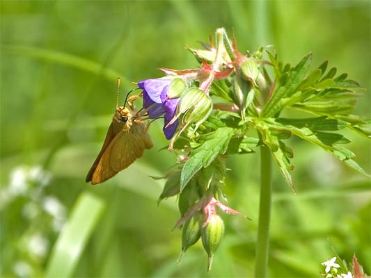 Wiesen-Storchschnabel (Geranium pratense) mit rostfarb. Dickkopffalter (Ochlodes venatus) mehr über Dickkopffalter-im-Glemstal |