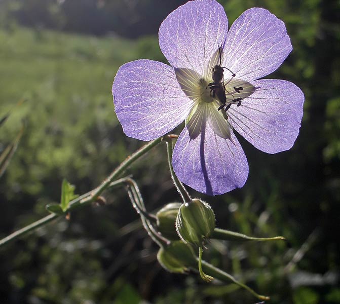 Wiesenstorchschnabel im Gegenlicht mit Insekt ...mehr über unser → NSG Hammelrain in Markgröningen |