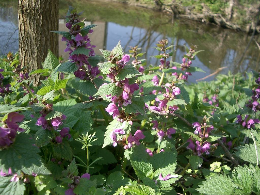 Blüht als dritte der Taubnesseln ab Ende April. Kommt in großen Beständen vor entlang des gesamten Bachlaufs