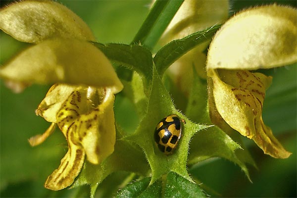 | Goldnessel (Lamia. galeobdolon) und Vierzehnpunktiger Marienkäfer phorylaea quatuordecimpunctata! s. Käfer-im-Glemstal |