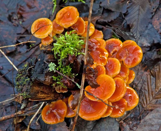 ein orange Pilz an einem Baumstamm ...mehr über unser → NSG Hammelrain in Markgröningen |