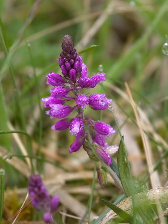 Kreuzblümchen (Polygala comosa) im Morgentau ...mehr über das → Naturdenkmal 25/36 Enzianwiese im Glemstal |