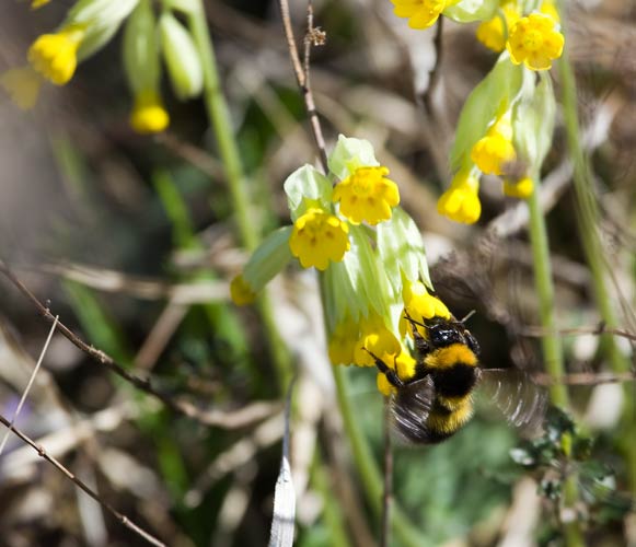 echte Schlüsselblume mit Gartenhummel (Bombus hortorum) (Danke an Martin "fait.accompli" für die Artbestimmung in 5/2011) mehr über unsere → Hummelarten im Glemstal |