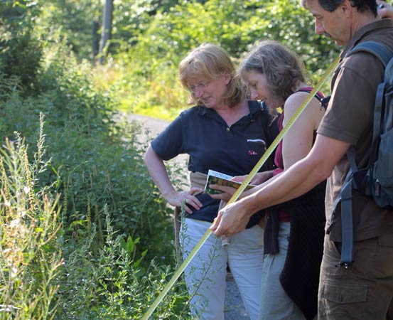 Oktober 2010: am 16.10.2010 ►Mit dem Revierförster im Zeilwald bei Hemmingen Der Förster zeigt uns die seltenste Baumart im Landkreis Ludwigsburg (rechts) Försterhund Anuschka mit dem NABU Schwieberdingen-Hemmingen (links) |