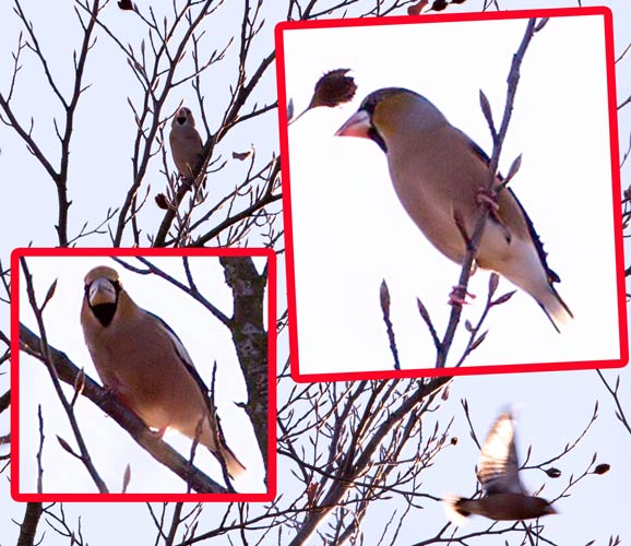 15.12.2013 ►Wintervögel im Hemminger Zeilwald mit Kernbeißer (rechts) |