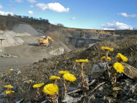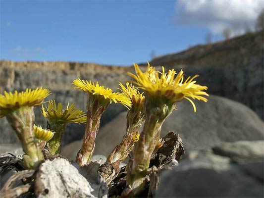 (Tussilágo fárfara) ein einziges Blütenmeer im März im Steinbruch, ein unglaubliches Vorkommen ...mehr über unseren → Huflattich im Glemstal |