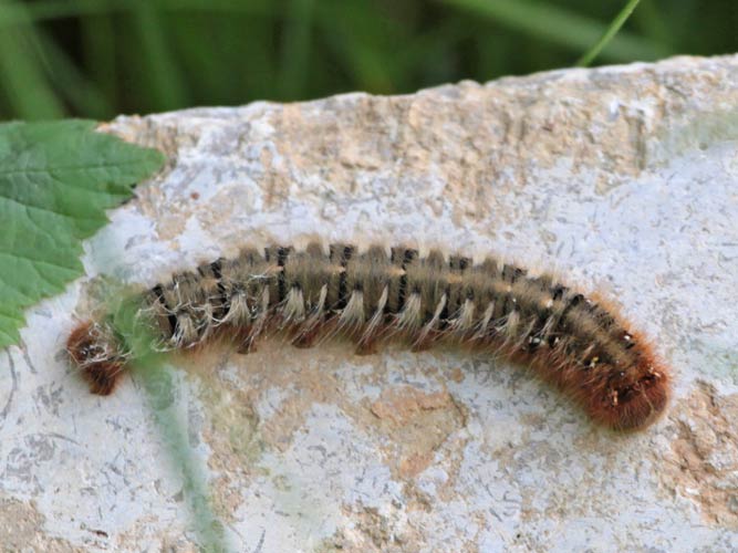 | eine seltene Raupe vom Eichenspinner (Lasiocampa quercus) ...mehr über unsere → Raupen im Glemstal |