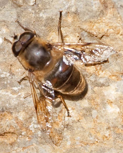 eine Mistbiene (Eristalis tenax) In Englisch heißen sie Drone-fly (Drohnenfliege) wegen der Ähnlichkeit mit einer männlichen Honigbiene. ...mehr über unsere → Schwebfliegen im Glemstal |