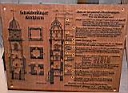 das alte Steingeländer auf dem Turm | Im Turm der Georgskirche steht eine Holztafel mit der Turmkonstruktion |