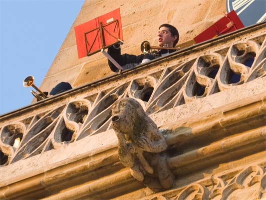 Der Posaunenchor spielt manchmal oben auf dem Turm. Sehr stimmungsvoll.