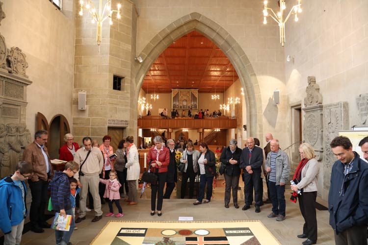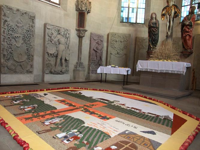 In der Georgskirche gibt es seit einigen Jahren im Herbst Erntedankmosaike. Unglaublich filigran.