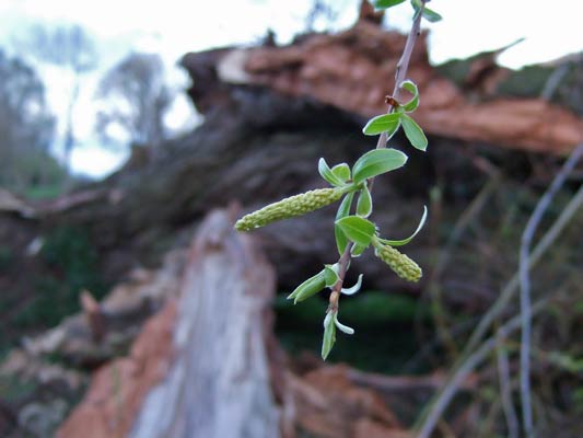 hat stark ausgetrieben aus dem umgefallenen Teil. Ein beachtliches Weidengebüsch