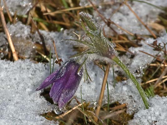 Küchenschelle in Schwieberdingen gebeugt vom Schnee |