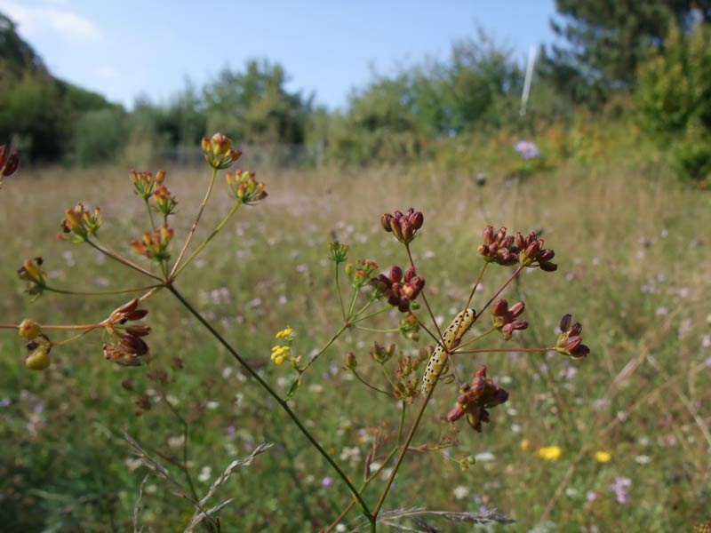 | der Pflanzenstandort Paradies mit einer Raupe an gelbem Labkraut im September |