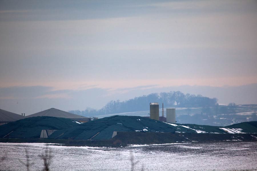 Blick zur Katharinenlinde von der Nippenburg aus, davor die Biogasanlage Haldenhof ...mehr über unsere → Nippenburg im Glemstal → Biogasanlage Haldenhof in Hemmingen |