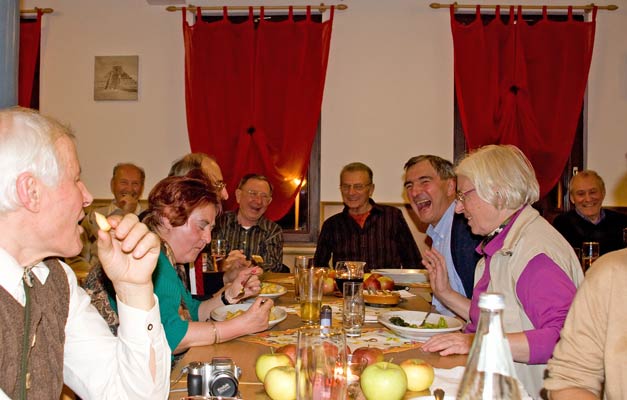 Torte und Apfelkuchen. Nach einem fröhlichen Abend gingen wir