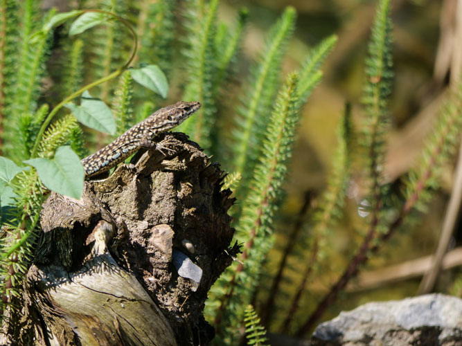 An der eigentlichen Schmetterlingswiese gab es diesmal nichts zu entdecken. Die Wiese hat sich von einer frühen Mahd noch nicht regeneriert. Es gibt dort zurzeit kaum blühende Blumen. An den schnell nachgewachsenen Gräsern gibt es für die Falter keine Nahrung. Ein überfliegender Zitronenfalter sah es auch so und verschwand schnell in die Höhe. Die Artenliste schloss ein Kaisermantel an einem blühenden Brombeerstrauch ab. Neben den Faltern zeigten sich uns noch einige Libellenarten, Mauereidechsen und ein Reh.