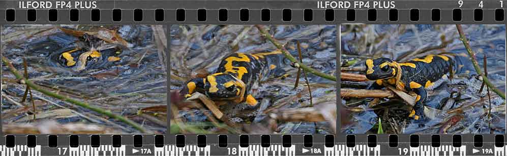 Feuersalamander im Feuchtbiotop im Glemstal bei der Neumühle.