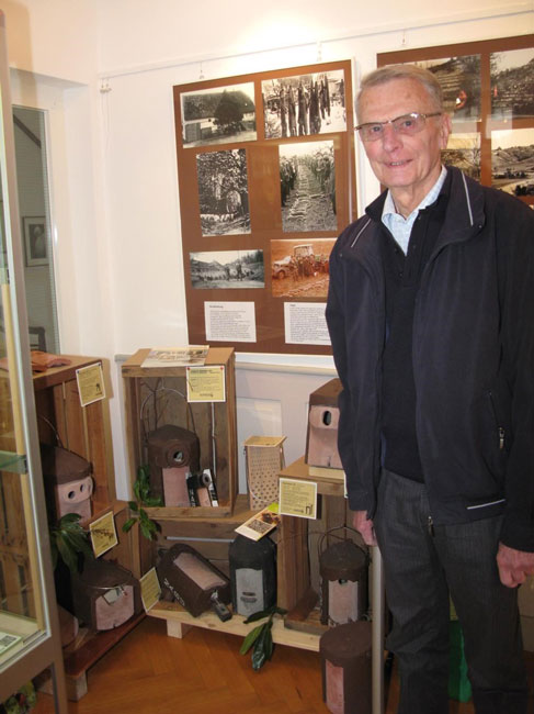 Von Günter Krämer sind neun der insgesamt ca. 50 unterschiedlichen Nisthöhlen zu sehen, die von ihm gefertigt wurden