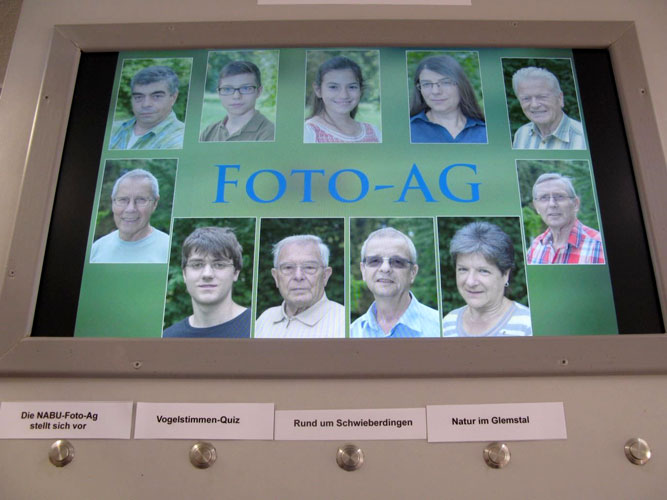 Die neue Medienstation präsentiert Bilder der NABU-Foto-AG, ein Vogelstimmen-Quiz, Bilder rund um Schwieberdingen sowie die Natur im Glemstal