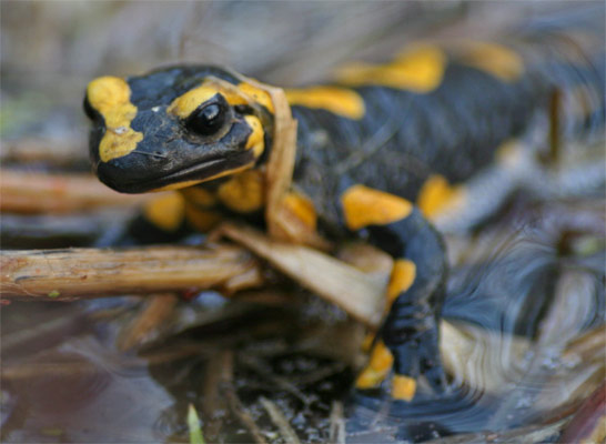 ... mehr Mehr über unsere Feuersalamander im Glemstal [Foto Feuersalamander nach dem Laichen in Schwieberdingen bei der Neumühle, 20.3.2005]