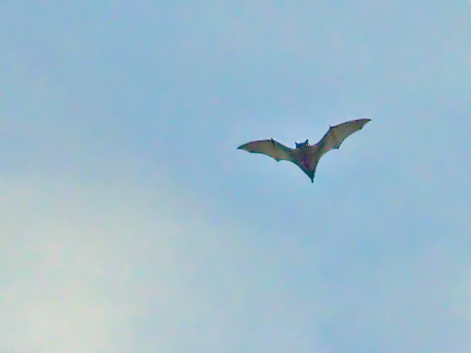 ... mehr Mehr über unsere große Abendsegler-Fledermaus im Glemstal (Nyctalus noctula) [Foto: große Abendsegler-Fledermaus fliegt tagsüber beim Herbsttagfliegen in Schwieberdingen, Immental Okt. 2007, Foto Hildegard Gölzer]
