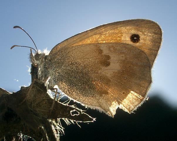Mehr über unsere Augenfalter (Satyridae) im Glemstal (aufs Foto klicken): ... mehr [Foto: Kleines Wiesenvögelchen (Coenonympha pamphilus) 27.8.2004 in Schwieberdingen]