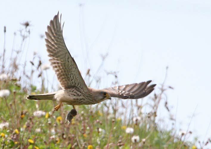 ... mehr Mehr über unsere Greifvögel im Glemstal (Falconiformes) [Foto: Turmfalke auf der Jagd im Glemstal bei Markgröningen im April]