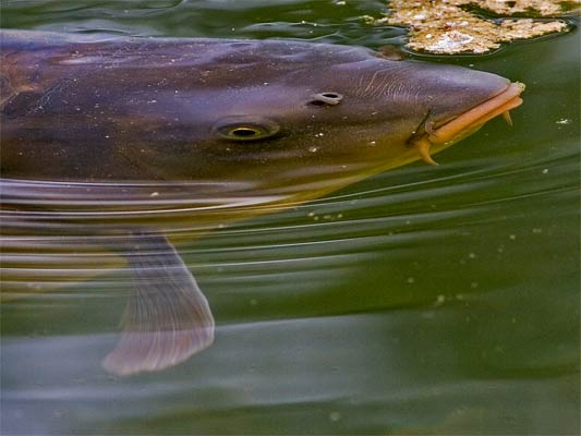Im Teich des NABU Markgröningen lebt 2004 ein großer Karpfen.