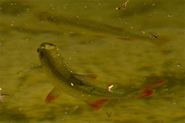 Rotfeder sein. Aber was ist der golden schimmernde Fisch in der Bildmitte??