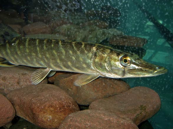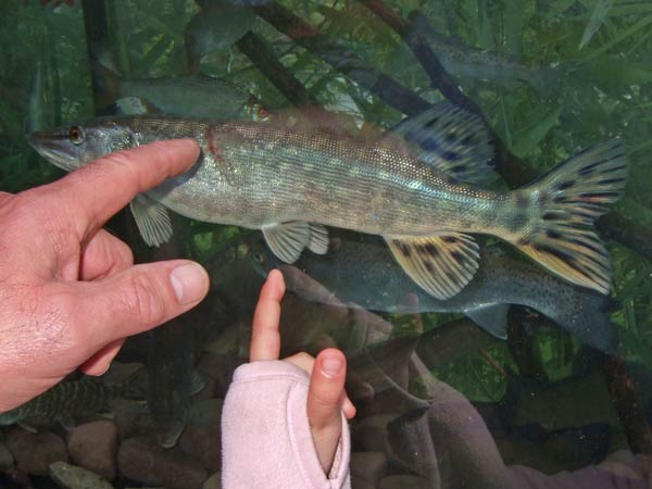 | Die Fische wurden morgens aus der Enz gefischt | Enz-Fische im Aquarium | können einzeln fotografiert werden | großer Hecht | kleiner Hecht |