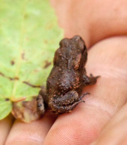 Die kleine Kröte in der Hand von Lino Trinkmann. Etwa so groß wie ein 20