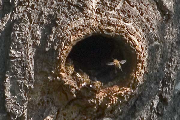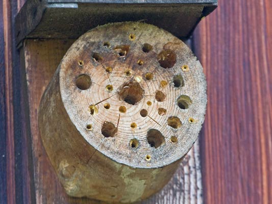 Offenbar überwintern die Wildbienen auch in diesen Löchern. Walter hatte mit