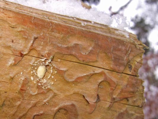 eifrig daran herumgepickt. Wobei der Specht Wildbienenhotels aus Holz offenbar