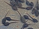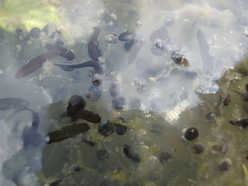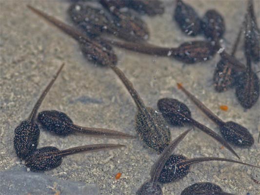 riesige Zahlen von ganz jungen Kaulquappen (von Froschlaich) in einem der
