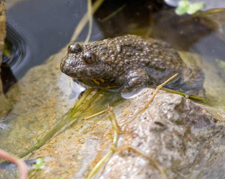 Die Gelbbauchunke bevorzugt zum Laichen kleine Pfützen und Tümpel. Dann hat sie