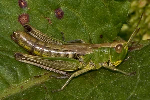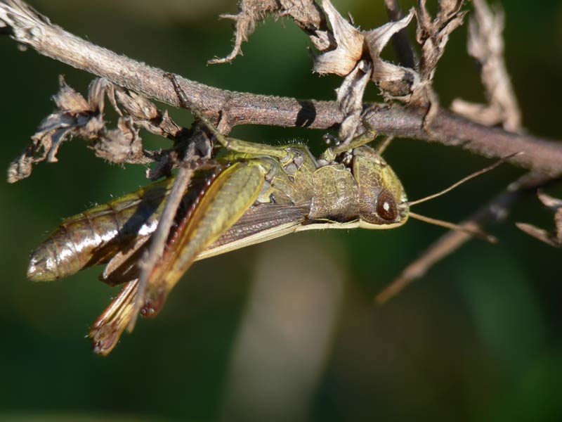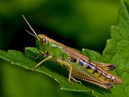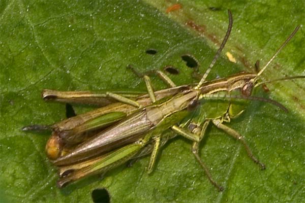 beim Drücken. Wiesen-Grashüpfer? |