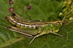 Kurzfühlerschrecke; Feldheuschrecke evtl. bunter Grashüpfer, juv. ...mehr über unser → Naturdenkmal Heimberg |