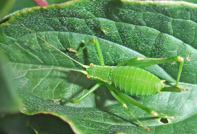 eine Langfühlerschrecke: Gemeine Sichelschrecke ? (Phaneroptera falcata) ...mehr über unseren → Siegfriedsfelsen in Markgröningen |