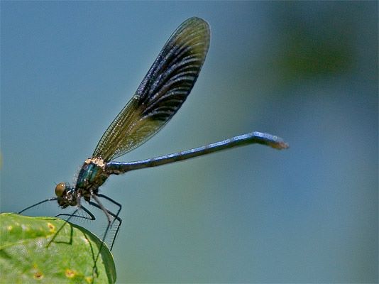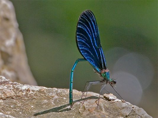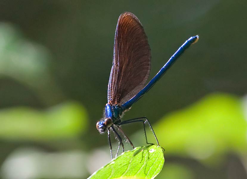 | Blauflügel-Prachtlibelle | Blauflügel- Prachtlibelle (männl.) interessante Schwanzhaltung |